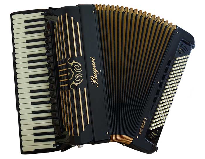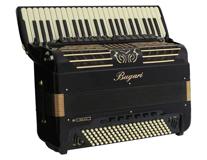 This superb bespoke Bugari 288 Gold Plus piano accordion was a recent Accordion Lounge commission and features:-