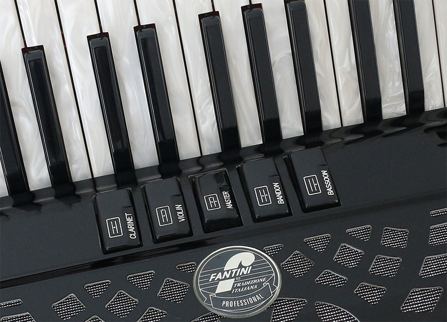 • Pearloid keys and buttons