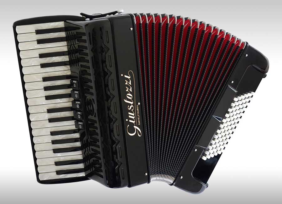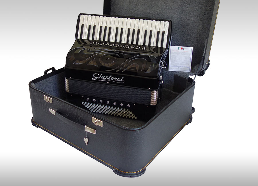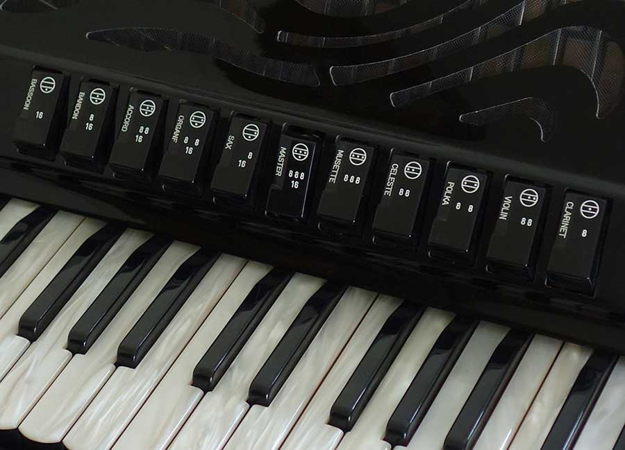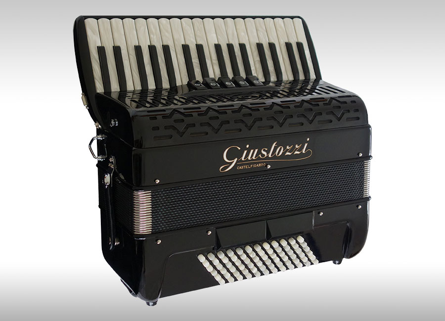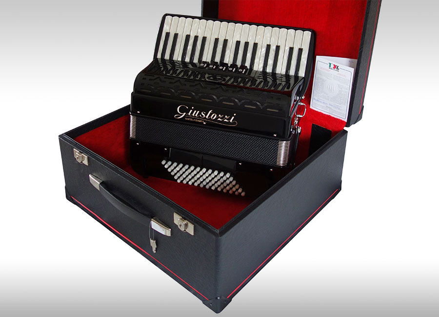 Compact, lightweight, 3 voice, 72 bass tremolo tuned piano accordion. Perfect for the gigging accordionist who is frequently on the move!