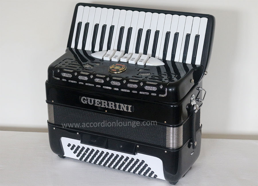 Compact, lightweight and versatile, this 3 voice (LMM), 80 bass Guerrini Mod 621 is an ideal entry level accordion for a beginner or as a robust gigging instrument for a folk, session or strolling musician. Featuring rich tremolo tuning and a powerful bass, it is ideal for most styles of music and at just £725.00, offers great value for money! SORRY - THIS ACCORDION HAS NOW BEEN SOLD