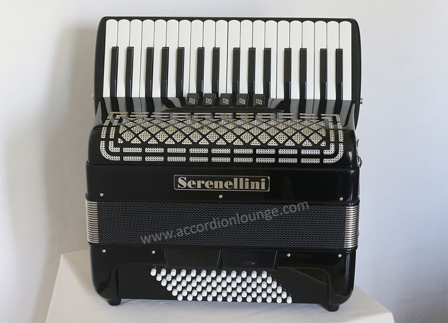 This is 34 key/72 bass, 3 voice (LMM) Serenellini 343 is in very good condition. It has a bright tremolo making it ideal for folk and other popular styles of music. Compact and lightweight, it is perfect for young accordionists, folk musicians, strolling musicians or a beginner looking to upgrade from starter instrument to a good quality hand made Italian accordion. SORRY -THIS ACCORDION HAS NOW BEEN SOLD.