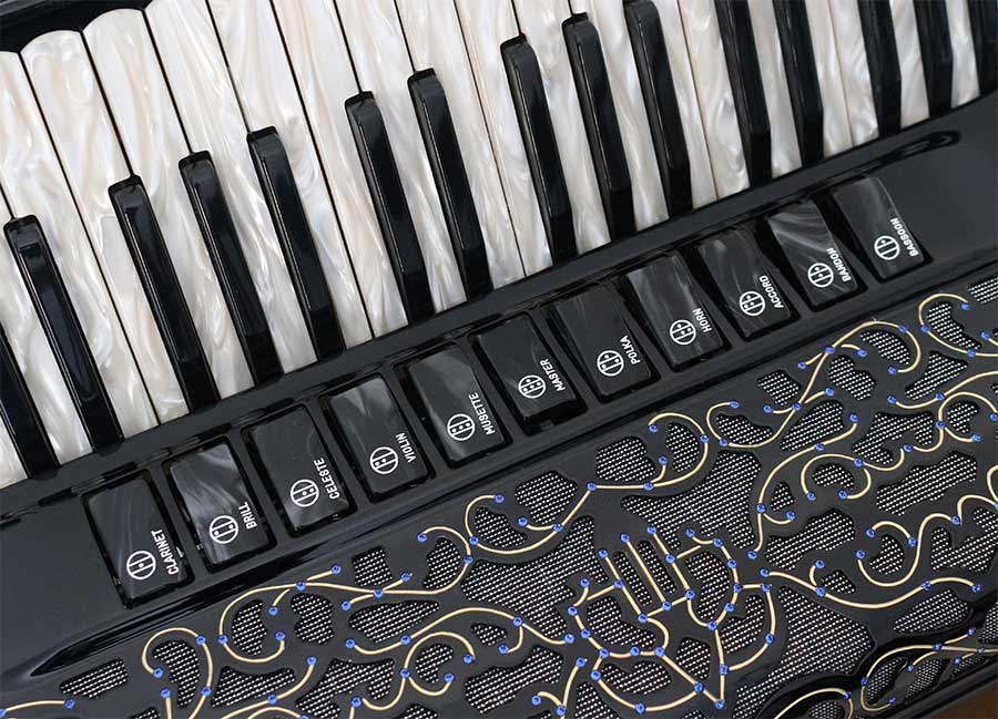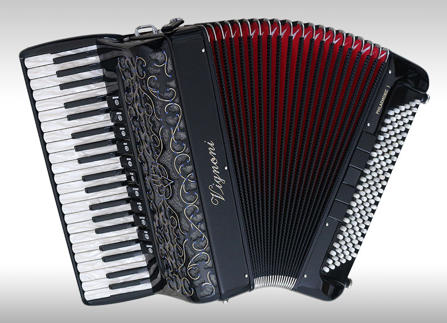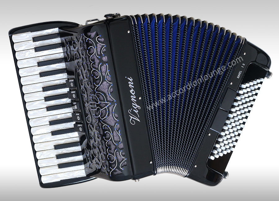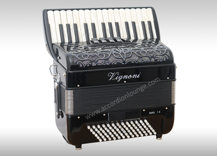 One of Vignoni’s best selling models, the Ravel II BX is a superb 4 voice, compact 96 bass double cassotto musette piano accordion.